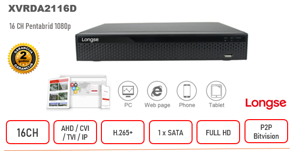 16CH H.265 5IN1 XVR 5M-N XVRDA2116D